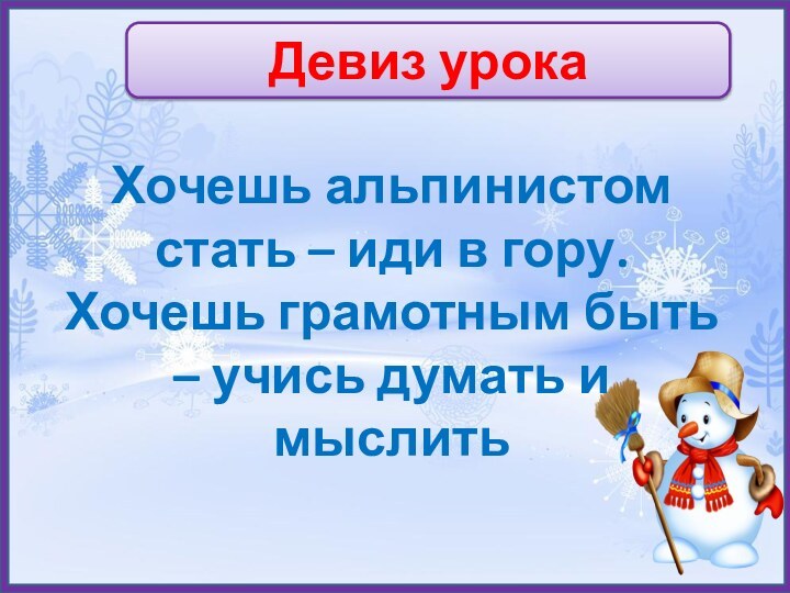 Девиз урокаХочешь альпинистом стать – иди в гору. Хочешь грамотным быть – учись думать и мыслить