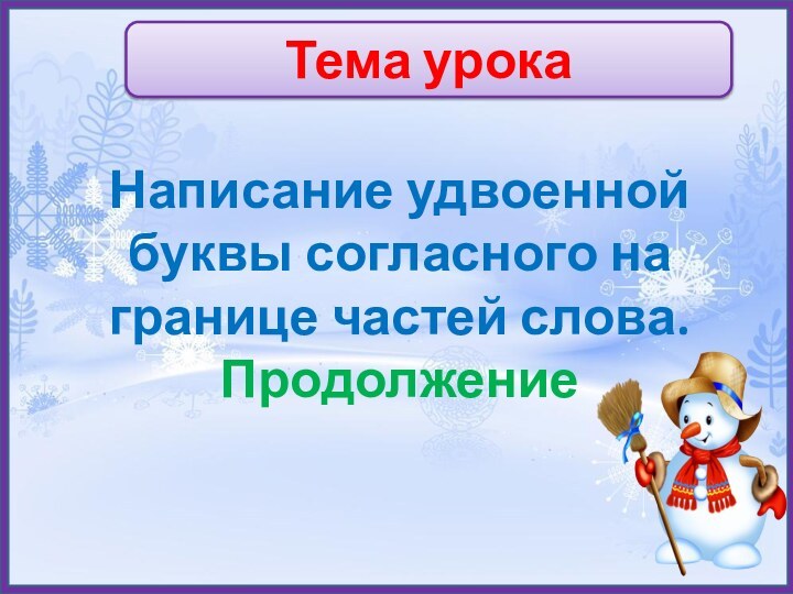 Тема урокаНаписание удвоенной буквы согласного на границе частей слова.Продолжение