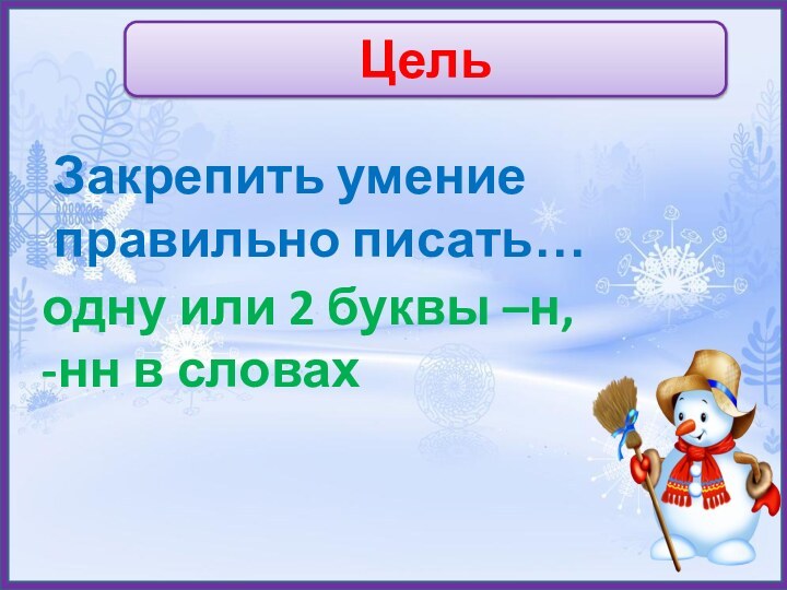 ЦельЗакрепить умение правильно писать…одну или 2 буквы –н, -нн в словах