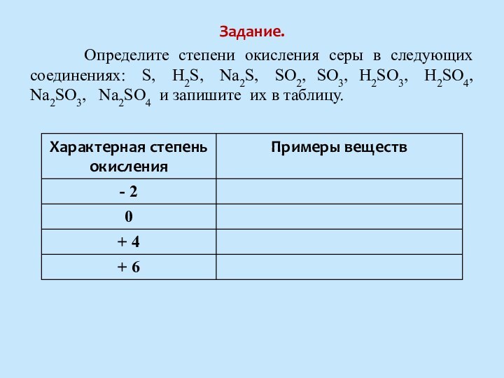 Степень окисления атома серы низшая равна -2 , высшая равна +6