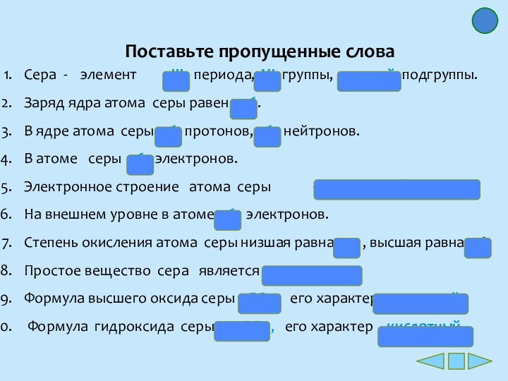 Электронное строение атома серы