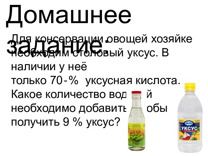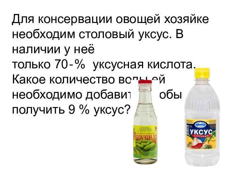 Для консервации овощей хозяйке необходим столовый уксус. В наличии у