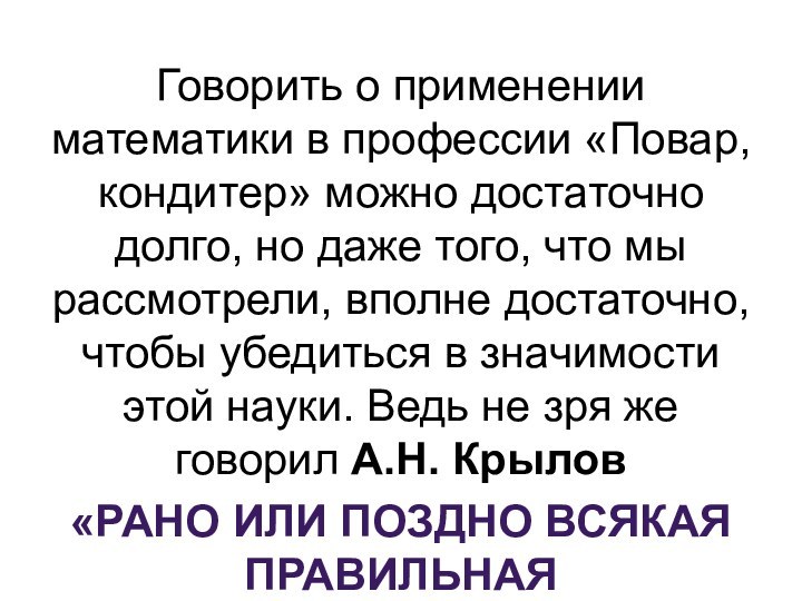 вполне достаточно, чтобы убедиться в значимости этой науки. Ведь не зря же говорил А.Н. Крылов