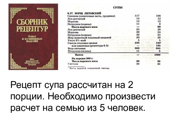 Рецепт супа рассчитан на 2 порции. Необходимо произвести