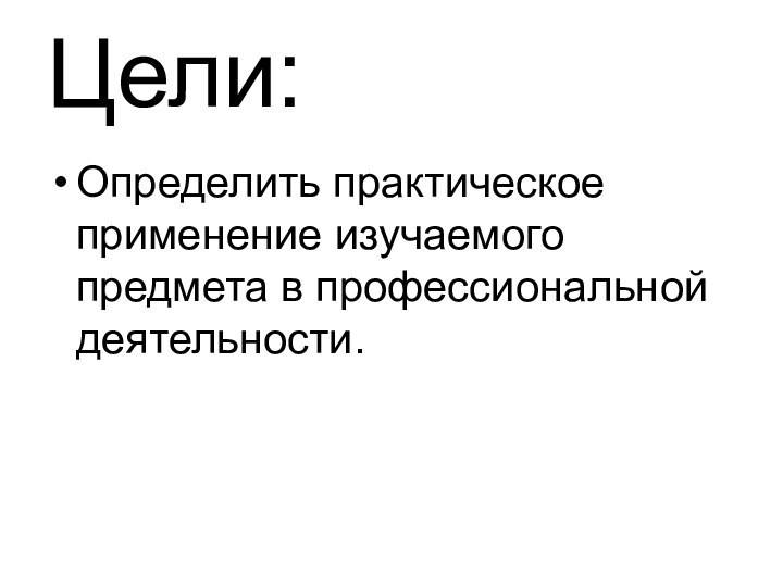 Определить практическое применение изучаемого предмета в профессиональной деятельности.