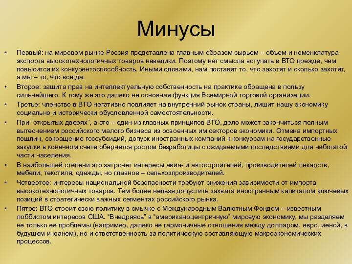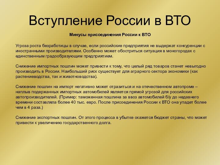Минусы присоединения России к ВТО