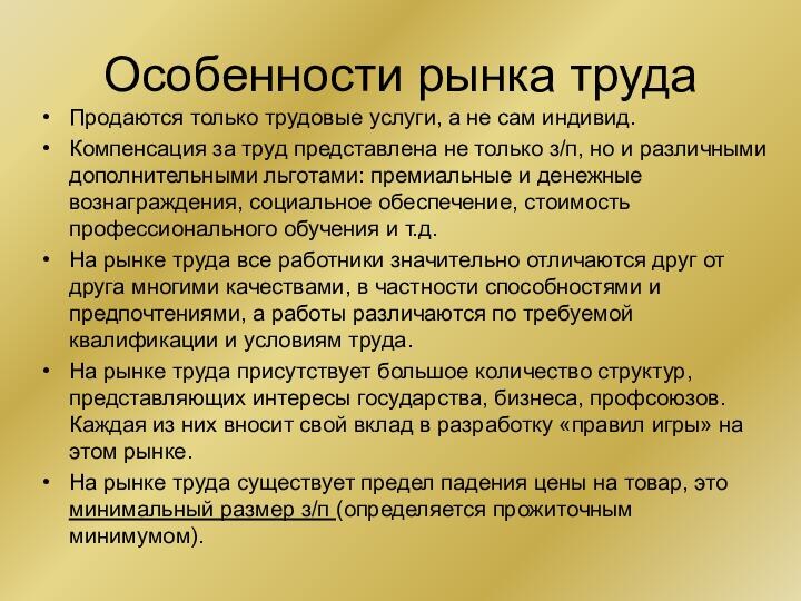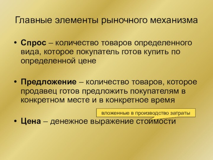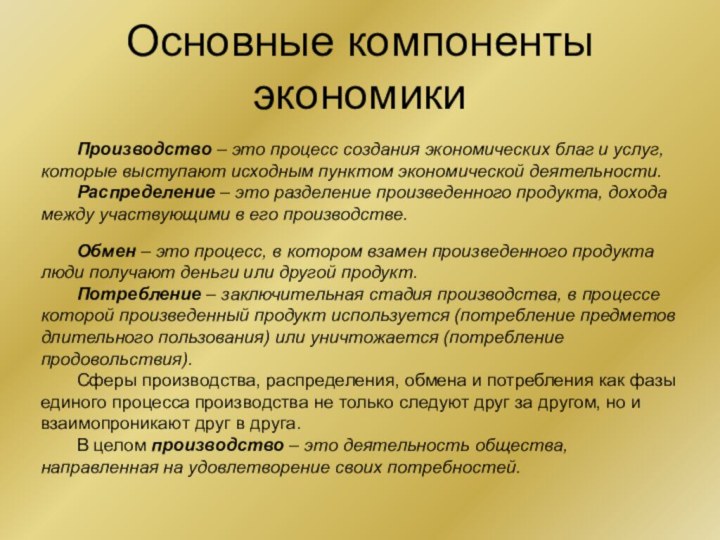 Основные компоненты экономики