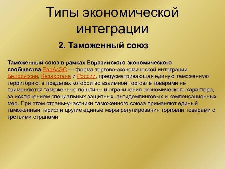 2. Таможенный союз