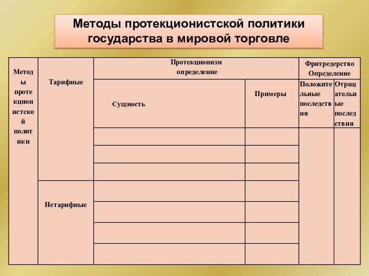 Методы протекционистской политики государства в мировой торговле