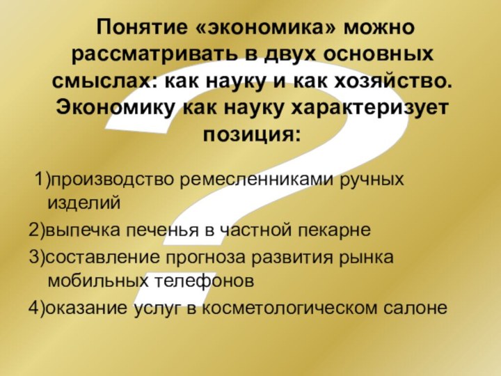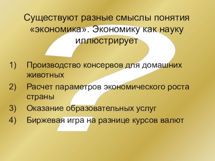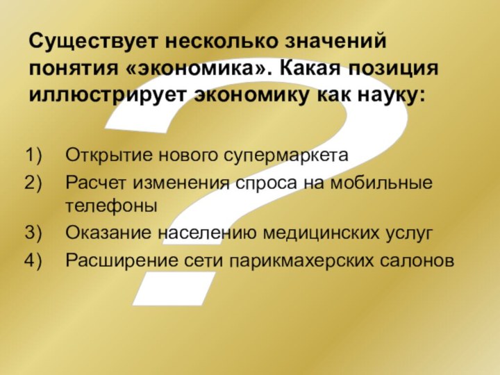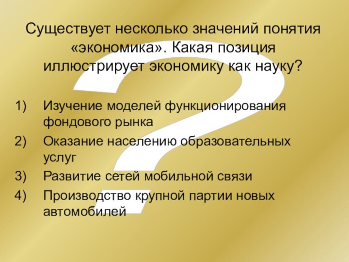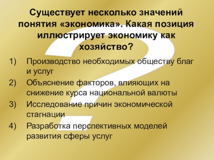 Существует несколько значений понятия «экономика». Какая позиция иллюстрирует