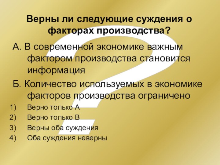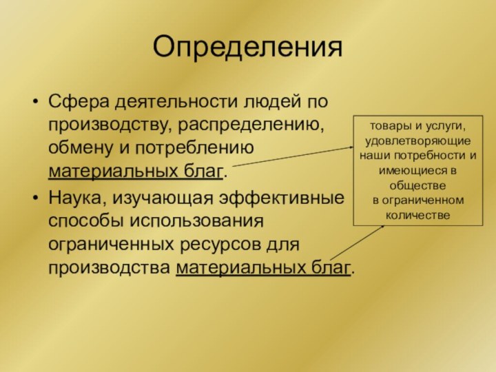 экономических благ и услуг, которые выступают исходным пунктом экономической