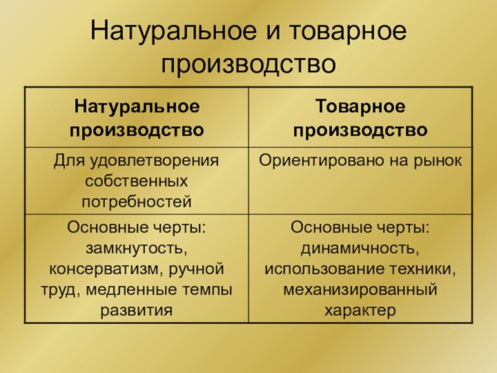 Натуральное и товарное производство