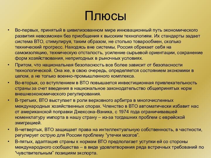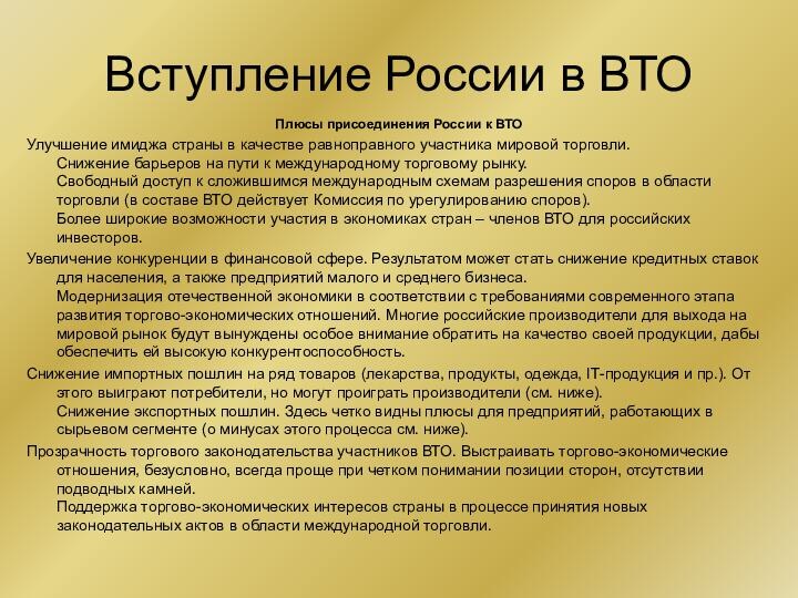Плюсы присоединения России к ВТО