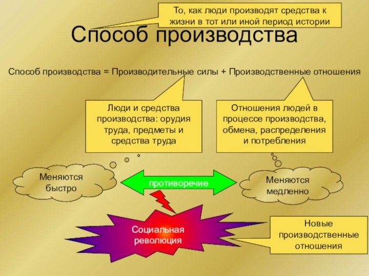 Способ производства = Производительные силы + Производственные