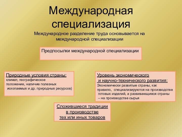 получает выгоду, если она специализируется на производстве тех товаров,