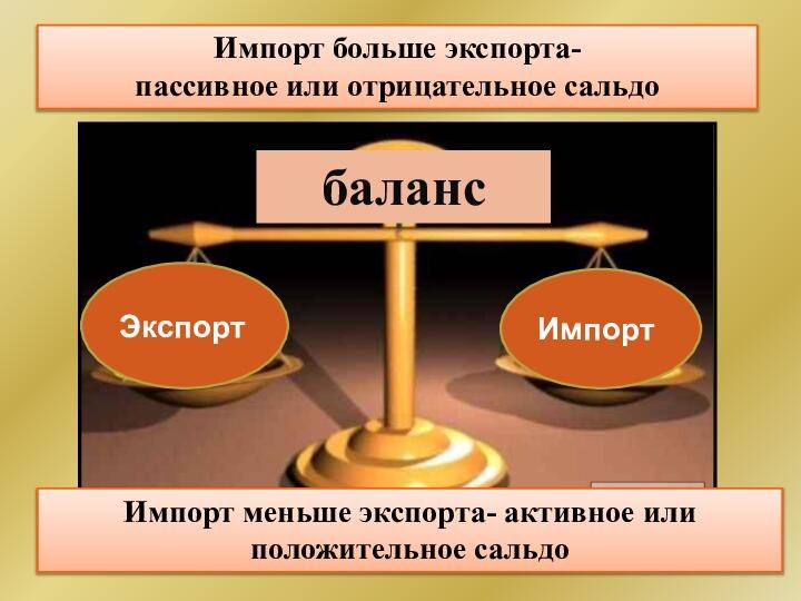 Импорт меньше экспорта- активное или положительное сальдо