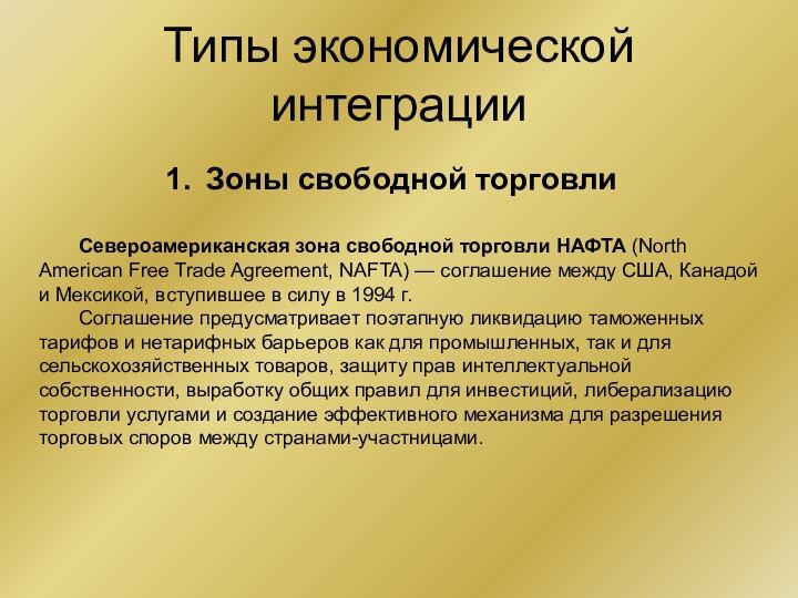 Типы экономической интеграции