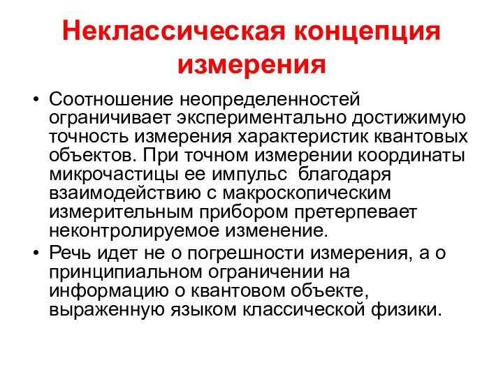 измерения характеристик квантовых объектов. При точном измерении координаты микрочастицы