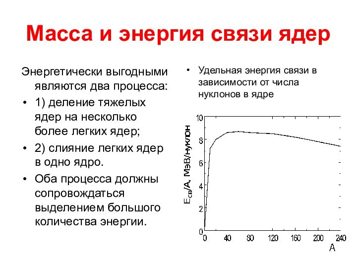 Энергия связи, приходящаяся на один нуклон Есв / А, называется удельной энергией связи нуклонов в ядре.