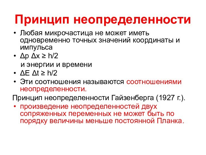 произведение неопределенностей двух сопряженных переменных не может быть по порядку величины меньше постоянной Планка.