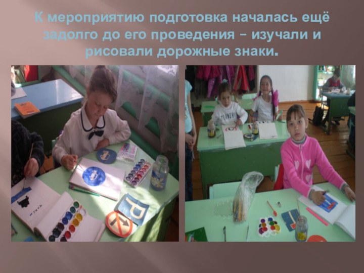 проведения – изучали и рисовали дорожные знаки.