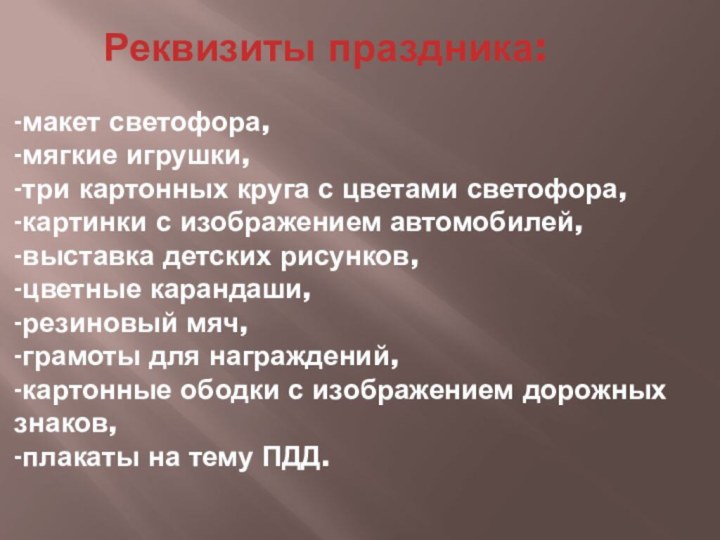 Реквизиты праздника: