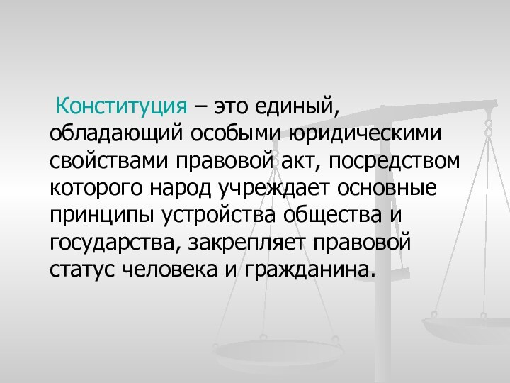 Конституция – это единый, обладающий особыми юридическими свойствами