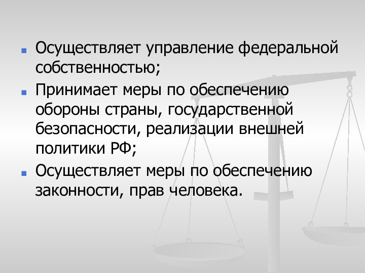 Осуществляет управление федеральной собственностью;