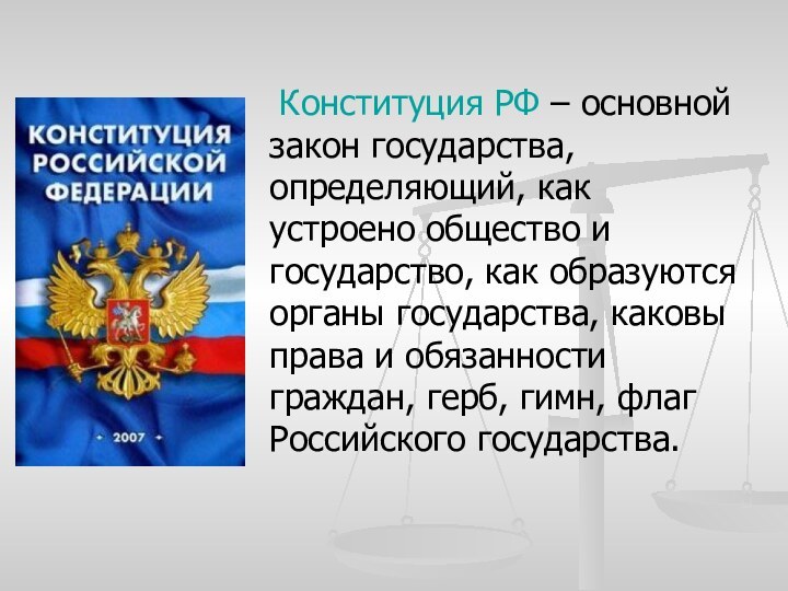Конституция РФ – основной закон государства, определяющий, как
