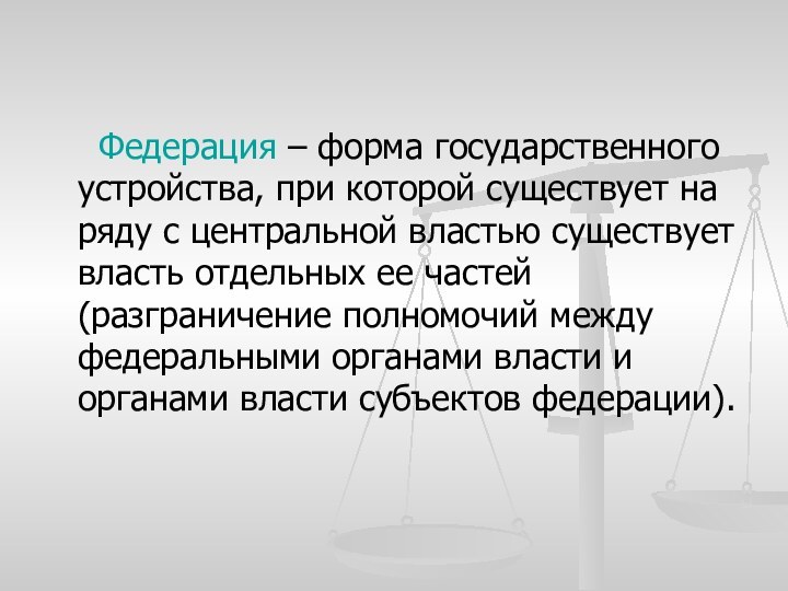 Федерация – форма государственного устройства, при которой