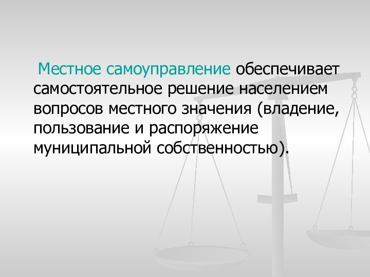 Местное самоуправление обеспечивает самостоятельное решение населением вопросов местного