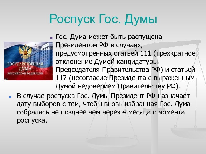 Гос. Думы, Правительства РФ;