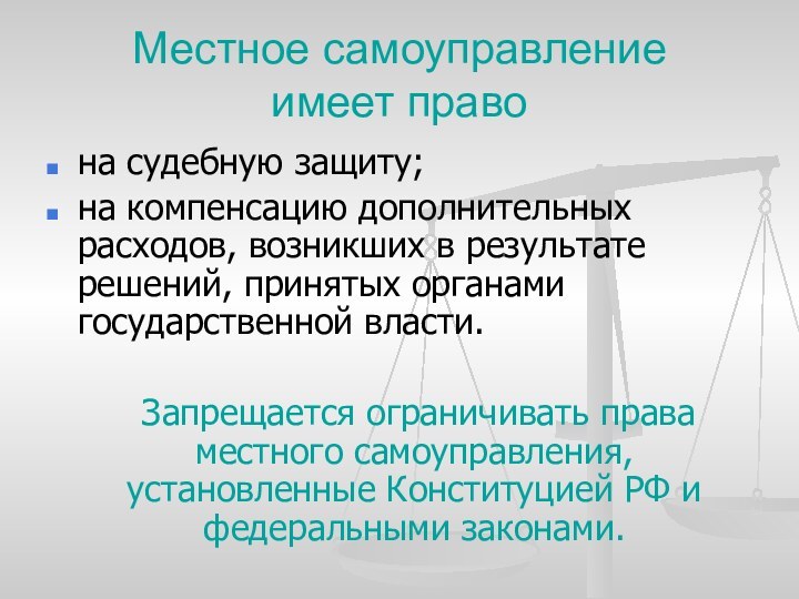 ограничивать права местного самоуправления, установленные Конституцией РФ и федеральными законами.