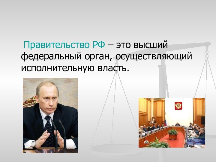 Правительство РФ – это высший федеральный орган, осуществляющий