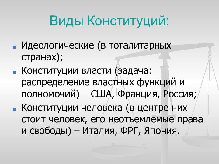 Виды Конституций: