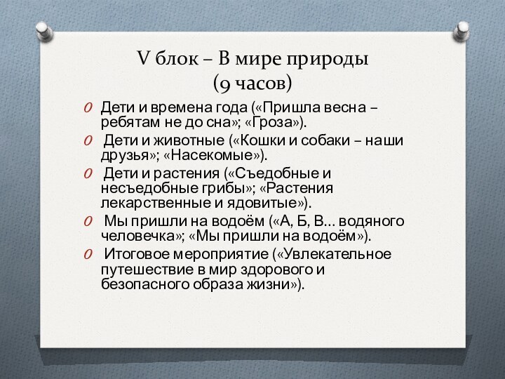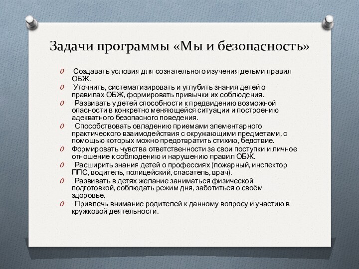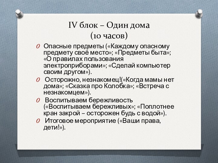 («Каждому опасному предмету своё место»; «Предметы быта»; «О правилах