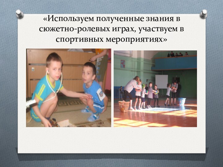 «Используем полученные знания в сюжетно-ролевых играх, участвуем в
