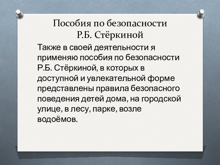 я применяю пособия по безопасности Р.Б. Стёркиной, в которых
