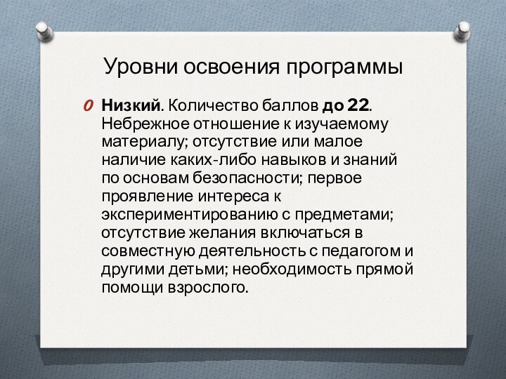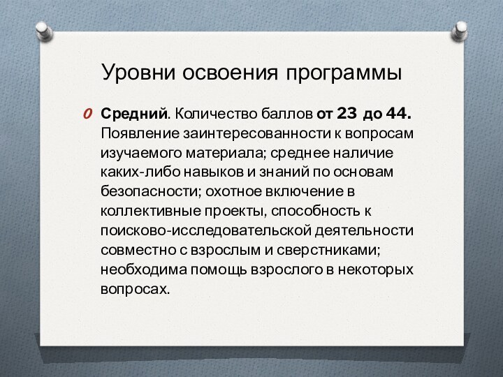 каких-либо навыков и знаний по основам безопасности; охотное включение в коллективные проекты, способность к поисково-исследовательской деятельности совместно с взрослым и сверстниками; необходима помощь взрослого в некоторых вопросах.