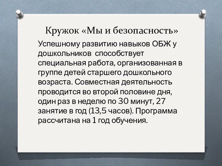 дошкольного возраста. Совместная деятельность проводится во второй половине дня, один раз в неделю по 30 минут, 27 занятие в год (13,5 часов). Программа рассчитана на 1 год обучения.