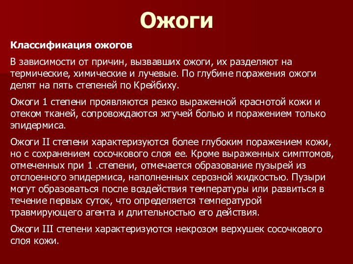 или лучевой энергией. Тяжесть ожога определяется величиной площади и