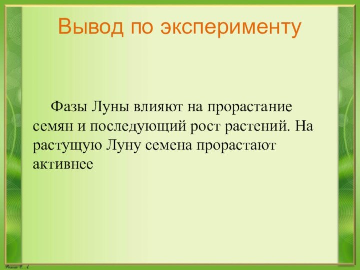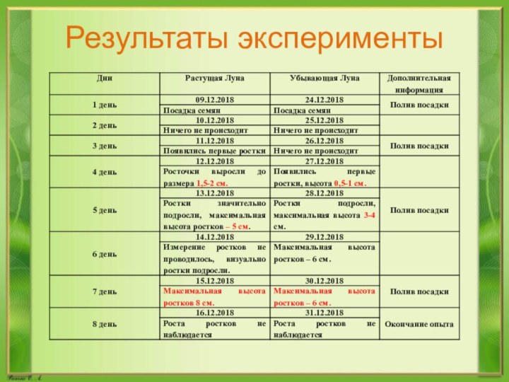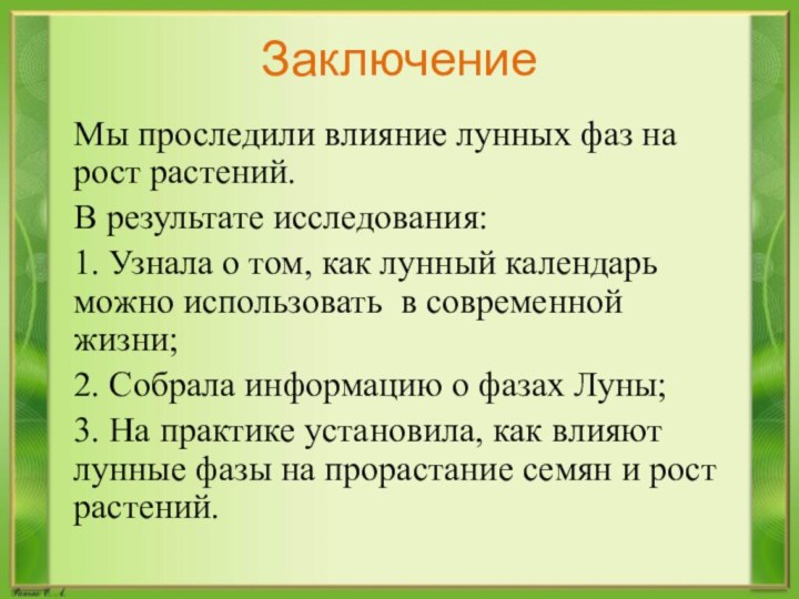 3. На практике установила, как влияют лунные фазы на прорастание семян и рост растений.