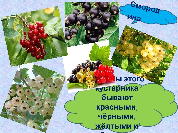 6) Ягоды этого кустарника бывают красными, чёрными, жёлтыми