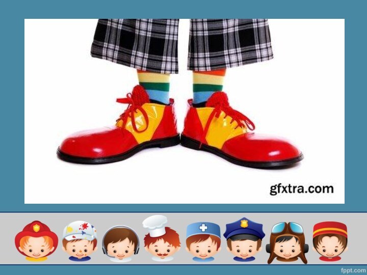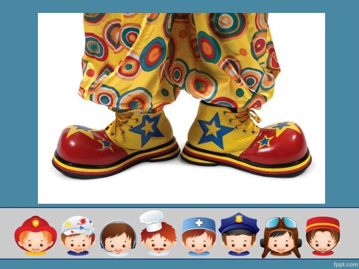 Обувь людей разных профессийПодготовила: Черниговская И.Б.Воспитатель МБДОУ № 19 г. Ангарск Чья это обувь? Военный Чья это обувь? Фигурист Коньки бывают разные Чья это обувь? Охотник, рыболов Чья это обувь? Футболист Чья это обувь? Хоккеист Чья это обувь? Космонавт Чья это обувь? Балерина Чья это обувь? Клоун