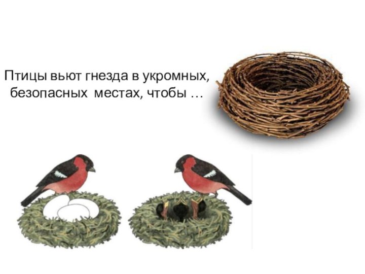 Птицы вьют гнезда в укромных, безопасных местах, чтобы …