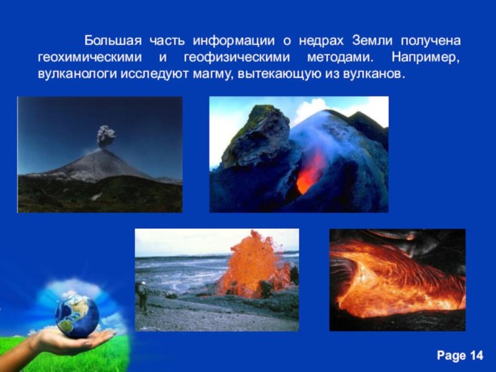 Земли получена геохимическими и геофизическими методами. Например, вулканологи исследуют