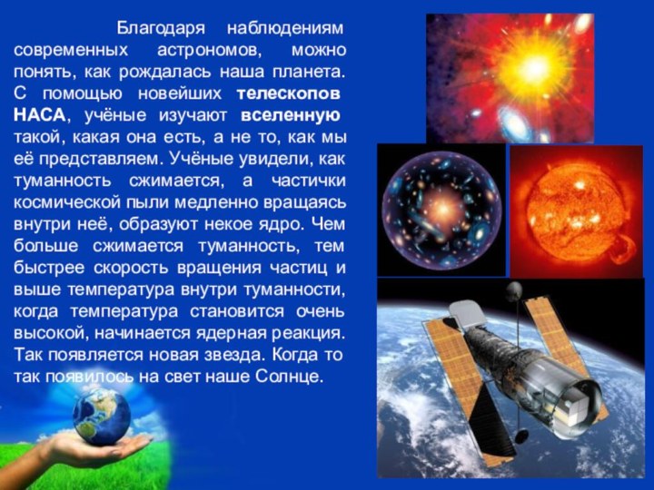понять, как рождалась наша планета. С помощью новейших телескопов