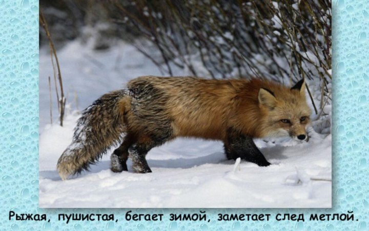 Слайд 12 Рыжая, пушистая, бегает зимой, заметает след метлой.