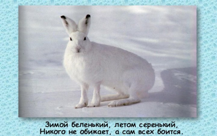 Слайд 10 Зимой беленький, летом серенький, Никого не обижает, а сам