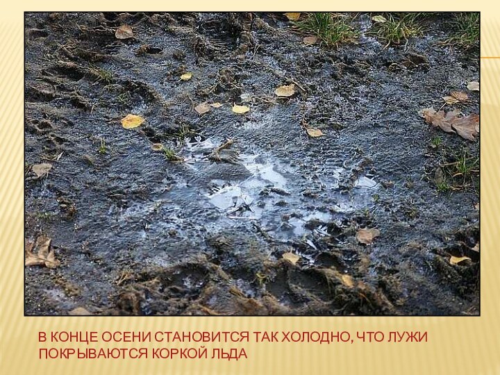 Слайд 27 В конце осени становится так холодно, что лужи